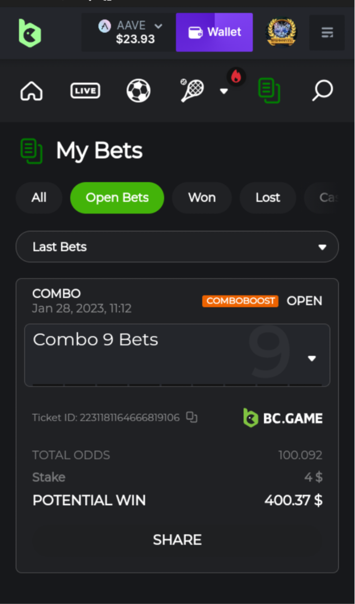 12. I think I was too tired and made the wrong bets with different sites.... haha Heres my losing ticket on bc... but bet nft somewhere else. Lol and I must of bet this not thinking its bc games haha