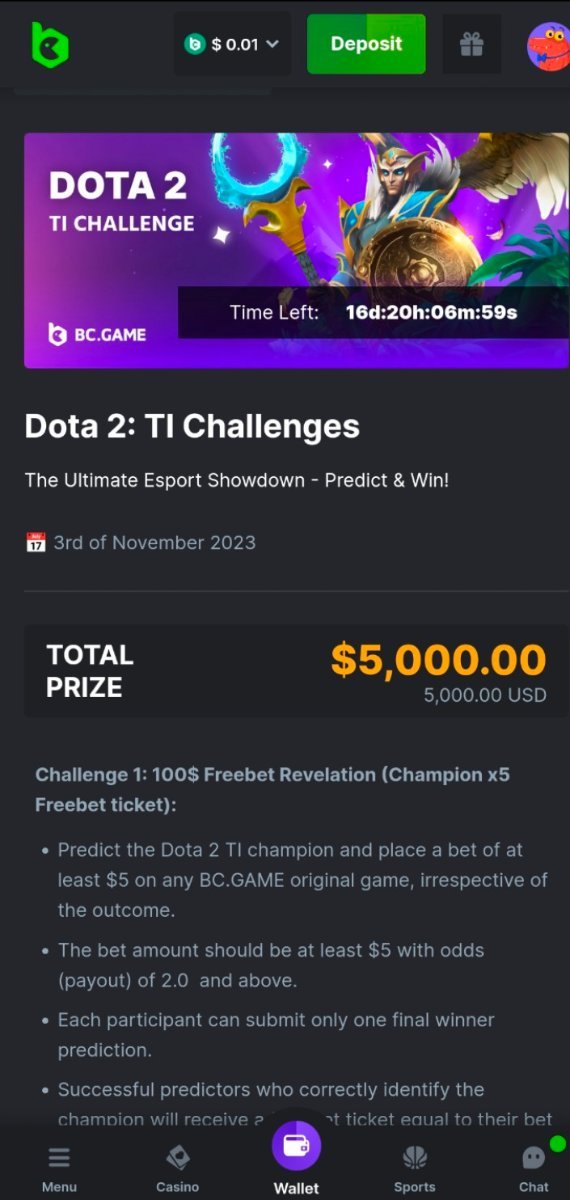 3. Hello, I lost Dota2 ti prediction for team liquid with a 10$ bet, I saw freebet 1:0.5 will be awarded instead if team liquid is not the winner. Does this mean I'm eligible for a 5$ sport freebet ticket Cashback?ty