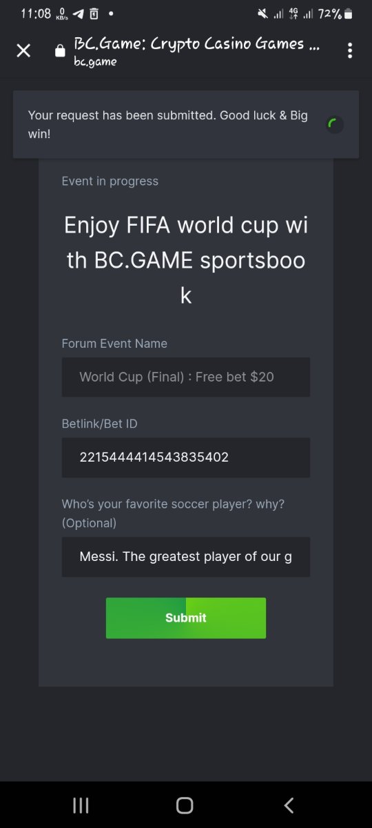 1. I've joined the forum event; Now it's your turn to win generous rewards from BC.GAME! Ticket ID : 2215444414543835402