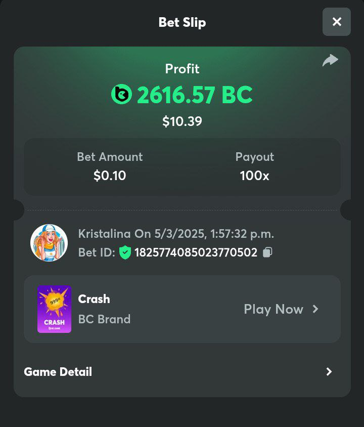2. Easy 1. Deposit Txid: 4434113e293eb472a7b171d17fbe54cbfb34631824705869716f789ec0040181 2. Instagram: @LincesaMdq 3. Instagram Post: https://www.instagram.com/p/DHXgr4JspCP/?igsh=ZWgwenpqYXVreTF 4. Twitter: @Kristalinauwu 5. Like, retweet & tag: @Kristalinauwu https://x.com/Kristalinauwu/status/1901728054969274750 6. Follow BCGame Facebook: Gisela Gall 7. Limbo: https://bc.co/game-detail/1825513481832927011 8. Sports bet: Ticket ID: 2513820866270339253 9. Arabian Secret: https://bc.co/game-detail/1825439374915515681 10. Sugar Fiesta 1000: https://bc.co/game-detail/1825441146495751971 11. 2FA activated: Medium 1. Deposit TxID: 4d707ead402ff5771e270374a5fc42f5798fdc6bd13d6bf975996a5316cb53ff TxID: 39d9776a52287c2bdc8bea45c1a751ae618ef4976ed8907766ce39ac0603937f 2. Crash: https://bc.co/game-detail/1825546630112045702 3. Plinko: https://bc.co/game-detail/1825430753182757665 4. Roulette: https://bc.co/game-detail/1825527742035924514 5. Starshine Princess 1000: https://bc.co/game-detail/1825598330617384993 6. Stellar Rush: https://bc.co/game-detail/1825601183186807841 7. Keno: https://bc.co/game-detail/1825612623614982433 8: Poker Ways: https://bc.co/game-detail/1825547398747784483 9. Wukong: https://bc.co/game-detail/1825595350268898850 10. Lottery and Porsche tickets: 11. Sports bet Combo Ticket ID: 2512055034057994476 Hard 1. Wheel: https://bc.co/game-detail/1825529693239491107 2. Crash: https://bc.co/game-detail/1825774085023770502 3. CoinFlip: https://bc.online/game-detail/1825620056214876707 4. Stellar Rush: https://bc.co/game-detail/1826242186137422626 5. Plinko: https://bc.co/game-detail/1825459660201698850 6. Limbo: https://bc.online/game-detail/1826864347105905955 7. Hashdice: https://bc.online/game-detail/1826862839661034018 8. Sea of Olympus 1000: https://bc.co/game-detail/1825539068560977186 9. Gold of Olympus: https://bc.online/game-detail/1826344599486243619 10. Duck Hunter: https://bc.co/game-detail/1825605420251285539 11. Sports bet combo Ticket ID: 2513187573116055908