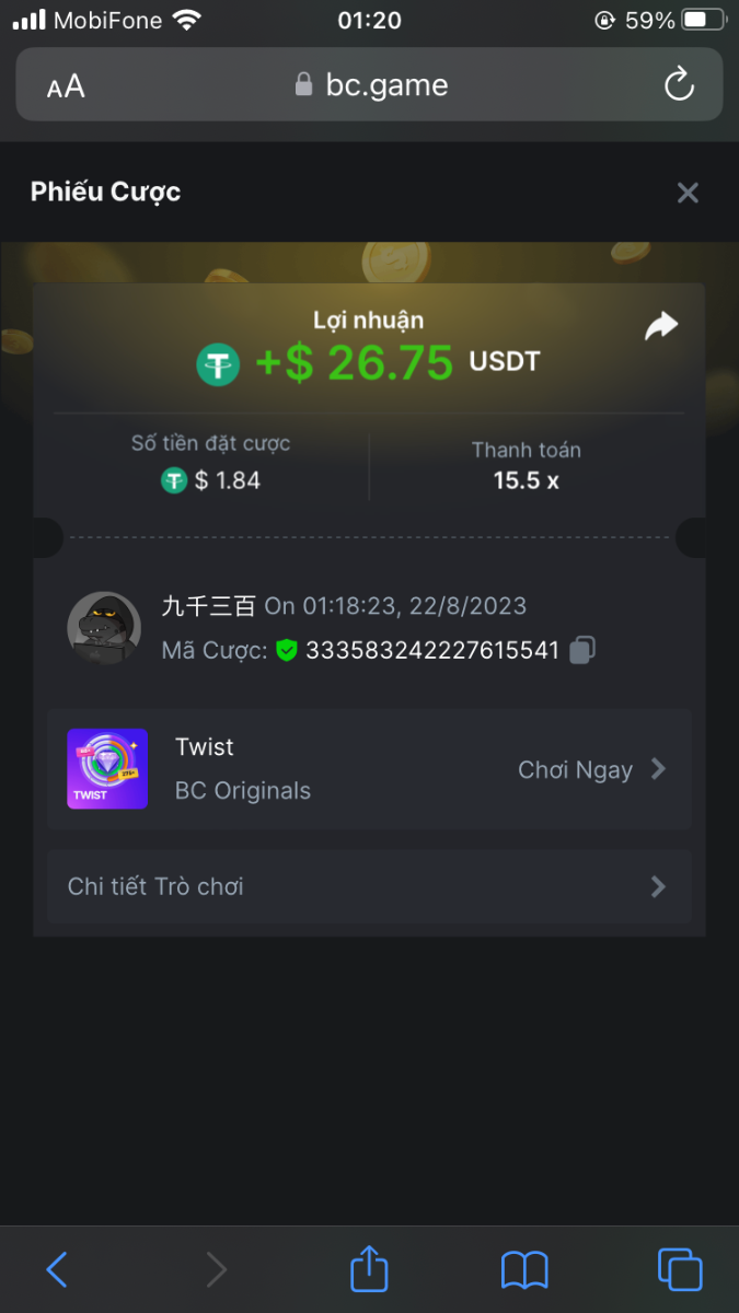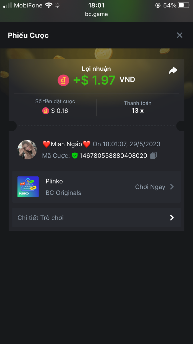5. I've joined the forum event; Now it's your turn to win generous rewards from BC.GAME! Bet id : 2291914185115836550