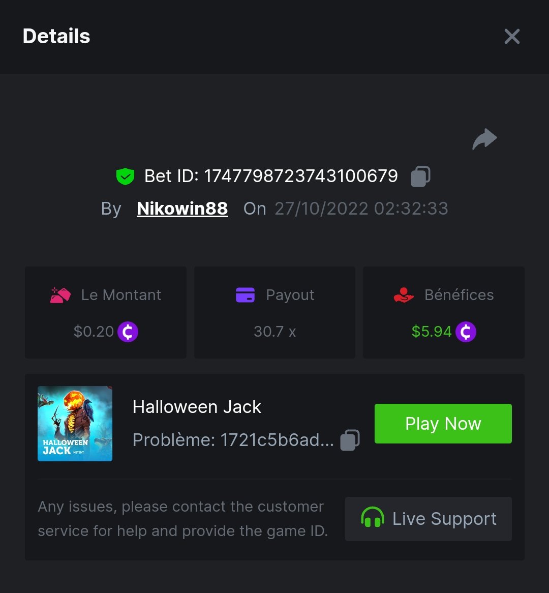 24. Voodoo X43.5 : https://bc.game/#/sd/10VVDDCA3NRDAR Guises of dracula X17.35 https://bc.game/#/sd/10VVEFQBWYMAZ7 Zombie Circus X38 https://bc.game/#/sd/10VVFILW1MYN0Z Lucky Halloween X32 https://bc.game/#/sd/10VW9NXA44O0SZ Fat DRAC X27 https://bc.game/#/sd/10VVIYPYVVMTJN Zombie carnival X110 https://bc.game/#/sd/10VVJVUWR1LDSJ Undead fortune X14.7 https://bc.game/#/sd/10VVL2HHSVL9N7 Night of the living tales X44.7 https://bc.game/#/sd/10VVUY08YSNH1V book of pumpkin X445,75 https://bc.game/#/sd/10VVVDH19J40LV Hellowin X27.5 https://bc.game/#/sd/10VW1IR0BFAC5V Wolf night X26 https://bc.game/#/sd/10VW5LREUJVGUR Zombie Circus X21 https://bc.game/#/sd/10VW7G19K97BIR Halloween jack X30.7 https://bc.game/#/sd/10VW8MEQDSDOUR Tombstone rip X40 https://bc.game/#/sd/10VW8XAY09RQXF