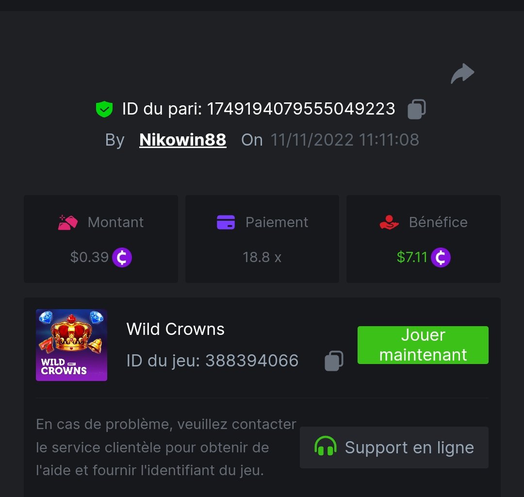 19. Mega Drago X37.5 : https://bc.game/#/sd/10WU2UM38BKE1F Frozen mirror X16 : https://bc.game/#/sd/10WU34DDQGEPSJ Chilli fiesta X19 https://bc.game/#/sd/10WYE384QFTCER Wild crowns X18.8 : https://bc.game/#/sd/10WYEKKZCJRL77