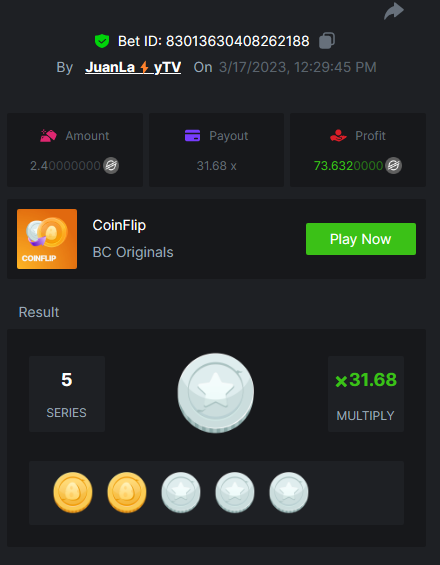 8. Easy 1. Win a Classic Dice bet with a 5x payout. https://bc.game/#/sd/11753S5GFRO2KZ 2. Win a 'Tie' 9x bet on the Baccarat. (no spread bets) https://bc.game/#/sd/11753V9Z4OZI1F 3. Get a 10x payout on a Crash bet. Make sure you catch the moon. https://bc.game/#/sd/117664TZCBXQFN 4. Get a 10x payout on the Egyptian Adventure. https://bc.game/#/sd/11754QJ7EREADV 5. Get a 20x payout on the Oriental Beauties. https://bc.game/#/sd/117556Q0HIN2FN 6. Win a Cave of Plunder bet on 7.50x payout (Completing all book symbols). https://bc.game/#/sd/11755DC2MO0W7N 7. Win a Sports bet with minimum odds being 1.5x (singles only) 1$ base min amount. 2256443882550203095 8. Get a minimum 20x multi on BGaming Hello Easter slot. https://bc.game/#/sd/1176DZOUF7HQ8J 9. Get a minimum 30x multi on Red Tiger Lucky Easter slot. https://bc.game/#/sd/1176EG3EDFI3V7 10. Enable 2FA for your BC.Game account + Verify E-Mail & Phone Number (If it's already activated, keep it activated). Medium 1. Win a bet in Roulette Single with betting on 0 only (36x). (no spread bets) https://bc.game/#/sd/117570EUE5982B 2. Get a 76x on Plinko. https://bc.game/#/sd/11761FG36E85CJ 3. Win 99x multi on Ring of Fortune. (no spread bets) 4. Win a Sports bet with minimum odds of 2x (singles only) 1$ base min amount. 2256444139656851877 5. Win a bet with Straight Flush in Video Poker (60x). 6. Win a bet on Keno Single by selecting numbers 7, 30, and 8, Medium risk. (50x). https://bc.game/#/sd/117585JEUEVE37 7. Win a bet by getting a natural Blackjack (A+K/Q/J/10) with only red cards in it. 8. Get a minimum 90x multi on BGaming Easter Heist slot. 9. Get a minimum 100x multi on Play&Go Easter Eggs slot. https://bc.game/#/sd/11768H7D93BSB7 10. Get a minimum 100x multi on No Limit City Bonus Bunnies slot. Hard 1. Get a 49.50x on Wheel (50 segments, High risk). https://bc.game/#/sd/1175AL07QWGYDV 2. Get a 420x on Plinko (14 rows, High risk). 3. Win with a minimum 500x multi on Limbo. 4. Get a minimum 506.88x on Tower Legend. 5. Win with a minimum 999x on Crash. 6. Post a winning bet with 21 mines and 3 diamonds on Mines game, (569.25x). 7. Win a bet on Keno Single by selecting numbers 10, 11, 12 and 13, High risk, (259.00x). https://bc.game/#/sd/11758J3N21Q58Z 8. Get at least 300x multi on Pragmatic Play Rabbit Garden slot. 9. Get a minimum 300x multi on Wazdan Burning Sun Easter slot. 10. Win a Sports bet with minimum odds of 10x (any bet allowed) with 1$ base min amount.