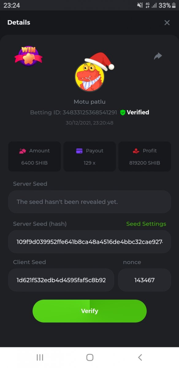 4. Game Hash Dice Result 72072 Minimum payout 100 x