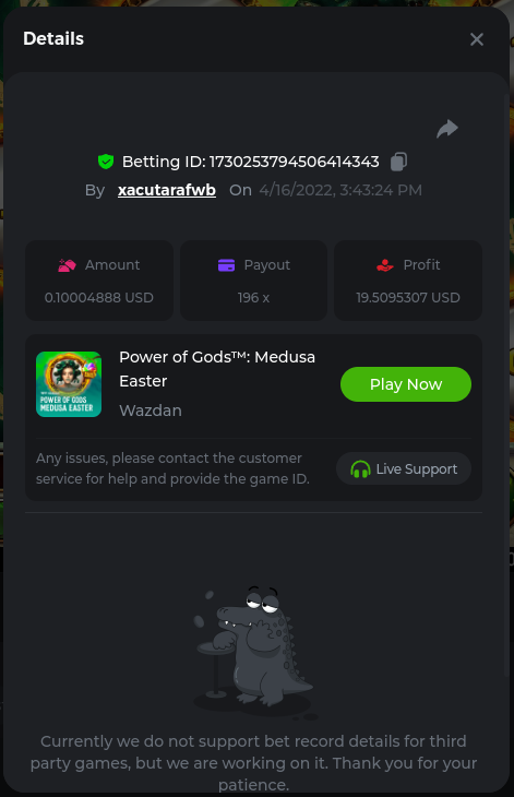 Easy Follow BCGame on Instagram (screenshot & IG username required). Post a photo or video on Instagram and tag BC.Game official profile (link to post & IG username required). Follow BCGame on Twitter (screenshot & twitter handle required). Like & Retweet the latest BC.Game Twitter post, tag at least 3 friends (link to post & twitter handle required). Follow BCGame on Facebook (screenshot & FB username required). Win a bet in Cave of Plunder on 7.50x payout (Completing all book symbols). https://bc.game/sd/?sd=10IK97QDGSLJPV Win a Sports bet with minimum odds being 1.3x (singles only) 1$ base min amount. Get a minimum 20x multi on Amatic Lady Fruits 100 Easter slot. Get a minimum 30x multi on Gamomat Ramses Book Easter Egg slot. https://bc.game/sd/?sd=10IKA3RC9WCTUB Enable 2FA for your BC.Game account (If it's already activated, keep it activated during event week). Medium Get a minimum 10x multi on Play&Go Easter Eggs slot . https://bc.game/sd/?sd=10IKAJU7TYZQC3 Win a bet in Roulette Single with betting on 0 only (36x). https://bc.game/sd/?sd=10IKAPIXLIF0GJ Get a 76x on Plinko. https://bc.game/sd/?sd=10IKB85MEHSSUR Get a minimum 60x multi on Wazdan Power of Gods™: Medusa Easter slot. https://bc.game/sd/?sd=10IKD69MDUBCIB Win a Sports bet with minimum odds of 2x (singles only) 1$ base min amount. Win a bet with Straight Flush in Video Poker (60x). https://bc.game/sd/?sd=10IKHG15WI1IQB Win a bet on Keno Single by selecting numbers 7, 30, and 8, Medium risk. (50x). https://bc.game/sd/?sd=10IKBI1TJRBWUR Get a minimum 90x multi on Big Time Gaming White Rabbit slot. https://bc.game/sd/?sd=10INY28VYQXUDV Win a bet by getting a natural Blackjack (A+K/Q/J/10) with only red cards in it. https://bc.game/sd/?sd=10IKCI4Q47Q0B7 Get a minimum 100x multi on No Limit City Bonus Bunnies slot. Hard Get a 49.50x on Wheel (50 segments, High risk). https://bc.game/sd/?sd=10IKIHFBAG6903 Get a 420x on Plinko (14 rows, High risk). https://bc.game/sd/?sd=10IO2W0TJPKWLV Win with a minimum 500x multi on Limbo. https://bc.game/sd/?sd=10IKH2KBUGNJF7 Get at least 300x multi on BGaming Hello Easter slot. Win with a minimum 999x on Crash. Get a minimum 100x multi on Pragmatic Chicken Drop slot. Get a minimum 100x multi on Push Gaming Fat Rabbit slot. Post a winning bet with 21 mines and 3 diamonds on Mines game, (569.25x). https://bc.game/sd/?sd=10IO1QLFAZMDQR Win a bet on Keno Single by selecting numbers 10, 11, 12 and 13, High risk, (259.00x). https://bc.game/sd/?sd=10INWO7SK5TN2R Win a Sports bet with minimum odds of 10x (any bet allowed) 1$ base min amount.