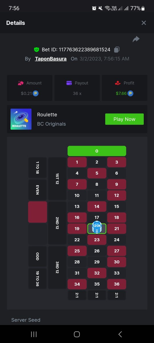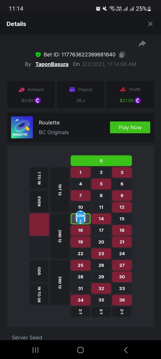3. Event details: Hunt 36x in roulette 3 in a row Roulette: 36x Hunt: 36x 3 in a row. Place a bet only in 1 number of your choice Minimum bet: 0.01 $BC Rewards: 1st ----- $10 BCD 1st ----- $8 BCD 1st ----- $5 BCD 3rd to 10th ---- 2 BCD each Rules/Guidelines: The first 10 users to submit 3 game links with 36x winning bets, along with the details(UID, Screenshot in chat room or socials, will be the winners!