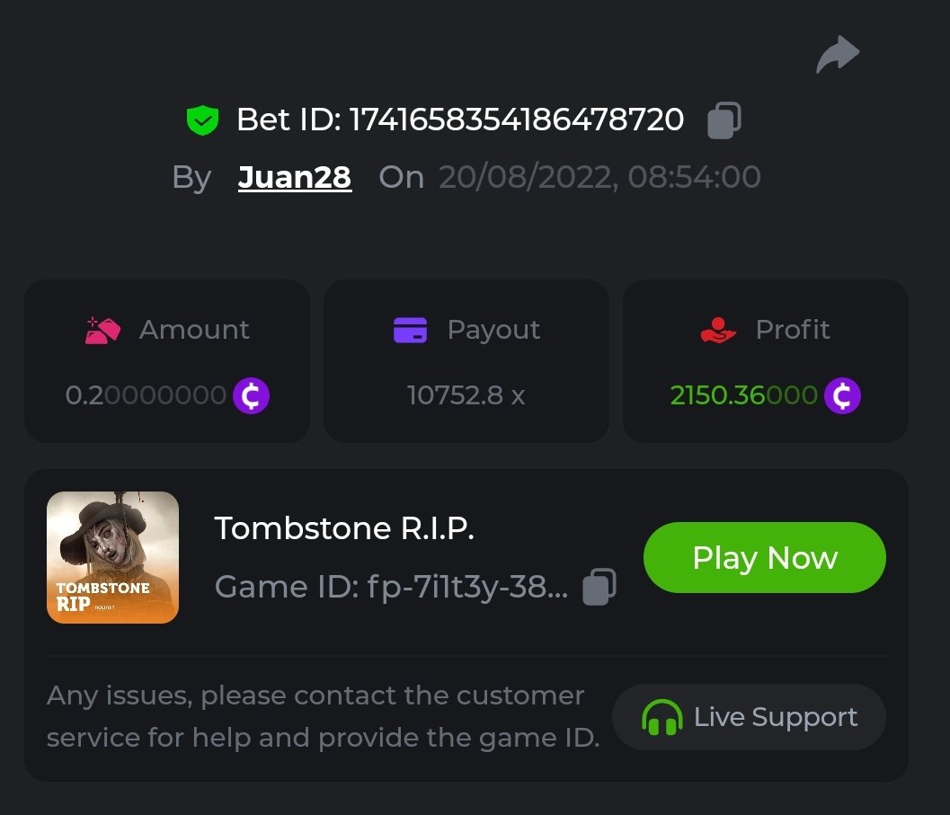Event Team Niobium Posted August 17, 2022 Event Team Share Posted August 17, 2022 (edited) Starts: 17, August 06:00pm GMTEnds: 24, August 06:00pm GMT Hey Everybody! Since the beginning of our Top Tier Battle, we've had players who want to take a more competitive approach to play. So we want to provide an experience specifically designed to challenge them. This week, we're excited to host a Nolimit City slot event. Five (5) games will be selected, in which all multipliers achieved in each game will be summed together to rank all players. The prize pool will be up to $6,000 depending on the number of participants, so don't miss out! Testing your limits is the best way to find out what you can do. Come join us starting today, until the event ends at 6:00pm GMT on Wednesday, August 24th. Eligible Games Hit the highest multiplier on the Nolimit City slots listed below Mental San Quentin Fire In The Hole Tombstone R.I.P. Karen Maneater Folsom Prison The highest multiplier reached in each game will be added together and counted as total points. Bonus buys are allowed. If the player submits multiple winning entries for the same game, the entry with the highest multiplier will be valid. Minimum VIP Tier Must be VIP04 or higher in order to enter this event. Minimum Payout Minimum payout to qualify is 10x (in any game) for a valid entry. Minimum Bet Size Mental - $0.20 FireInTheHole - $0.20 Tombstone R.I.P. - $0.10 Karen Maneater - $0.10 FolsomPrison - $0.20 Eligible Coins All cryptocurrencies are eligible (excepting JB, and BCL). Free Play Mode is not valid for this event. Prize Pool & Reward Breakdown The winners will win a share of the prize pool based on the detailed ranking below. Anyone who completes the side bounty will receive a share of a 10% of the prize pool. Within 72 hours after the end of each event, all prizes will be distributed to the winners. Kindly note that in some rare circumstances it may take a little longer, but always being a priority. BOUNTY - Share bet that shows exactly 50x payout on any of the five games within the timeframe of this Battle and you will receive a share of 10% of the prize pool! If nobody wins exactly the payout, the player/s closest to the payout will win this bounty! Original rules apply with a minimum bet, minimum payout & VIP. How to Enter Access the game to select your Bet ID, click on the Share icon (↷) and then Copy link. Return to the topic, paste the link in the field "Reply to this topic..." E.g.: https://bc.game/sd/?sd=10R209498GDKPF Each eligible entry must have the Bet Slip URL, the non-inclusion of the link will disqualify participation in the event. By participating in the Battle, you agree to keep your profile visible for the entire duration of the event. Participants should also be aware that hiding their profiles will invalidate their participation. In the same post, upload a screenshot of your win by clicking the game ID WITH VIEW IN USD mode ENABLED (accessible at the bottom of dropdown menu for your wallet up top, and Submit Reply. Done! This way, we can ensure that your bet indeed met the minimum requirement at the time of placing it: Example post - Link: https://bc.game/sd/?sd=10R209498GDKPF Good luck everyone! Edited August 18, 2022 by BC_PANDA added new game 6 Link to comment Share on other sites More sharing options...