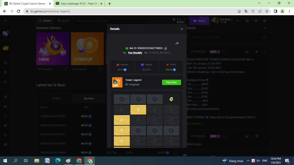Black Tiger Posted January 6, 2023 Share Posted January 6, 2023 Read Carefully Before Start To Hunt Daily Challenges #122 : Tower Legend Hunt :Win the highest pay outMin Payout requirement 100xMin Level 4️Duration Starting : Now End time : 23.59 UTC Time How to Join? Make screenshot + paste your bet link + UID or Profile link Mini bet amount - 0.01$ Any coin allowedReward Prizes 1st Place....... $7 BCD2nd Place..... $5 BCD3rd Place...... $4 BCD 🎖4th Place......$3 BCD5th - 10th Place......$1 BCD 🏵 Winners will be announcing next day after Roll Point 1 Link to comment Share on other sites More sharing options...