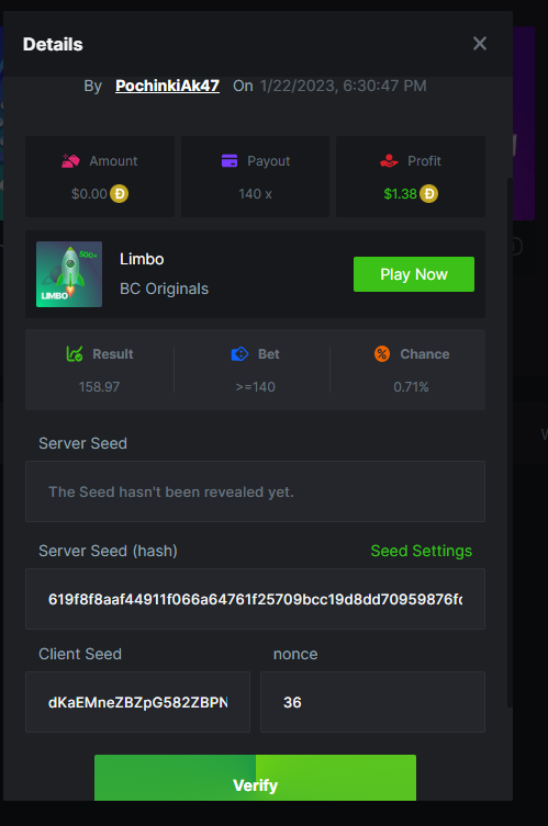 bassabar Posted January 22, 2023 Share Posted January 22, 2023 (edited) Was actually for another challenge https://bc.game/#/sd/111W230X59D1QR https://bc.game/#/user/profile/2133151 Edited January 22, 2023 by bassabar 1 Link to comment Share on other sites More sharing options...