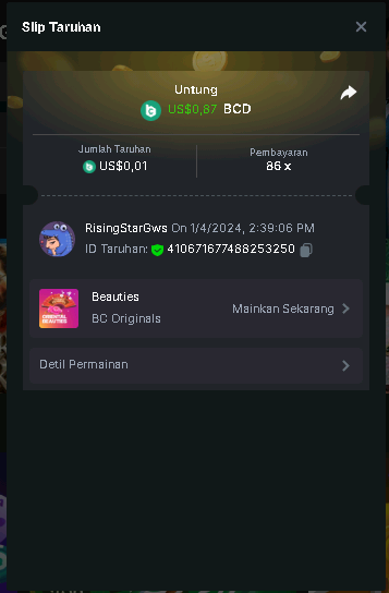 Moderator Giandreas Posted January 4, 2024 Moderator Share Posted January 4, 2024 Read Carefully Before Start To Hunt Forum Daily Challenges #469Hunt : Oriental Beauties Win the highest pay out Min Payout : 20x Min Level 10️Duration Starting : Now End time : 23.59 UTC Time How to Join? Make screenshot + paste your bet link + UID or Profile link Any coin, with min bet 0.01 USD is allowed (jb/bb/bcl not allowed)Reward Prizes 1st Place.....$7 BCD 2nd Place.....$5 BCD 3rd Place.....$4 BCD 4th Place.....$3 BCD 5th Place.....$2 BCD 🏵 Winners will be announcing next day after Roll Point! Link to comment Share on other sites More sharing options...