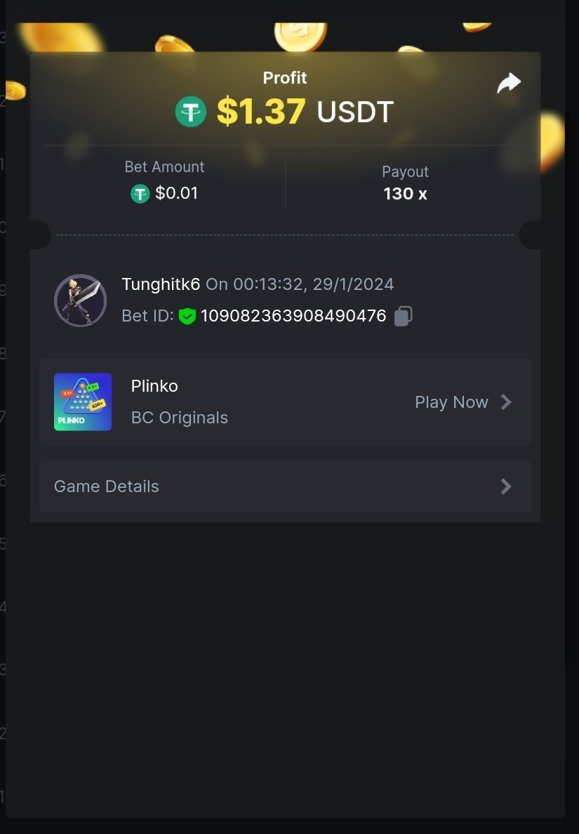Moderator Giandreas Posted January 29, 2024 Moderator Share Posted January 29, 2024 Read Carefully Before Start To Hunt Forum Daily Challenges #494Hunt : Plinko Win the highest pay out Min Payout : x120 Min Level 10️Duration Starting : Now End time : 23.59 UTC Time How to Join? Make screenshot + paste your bet link + UID or Profile link Any coin, with min bet 0.01 USD is allowed (jb/bb/bcl not allowed)Reward Prizes 1st Place.....$7 BCD 2nd Place.....$5 BCD 3rd Place.....$4 BCD 4th Place.....$3 BCD 5th Place.....$2 BCD 🏵 Winners will be announcing next day after Roll Point! Link to comment Share on other sites More sharing options...