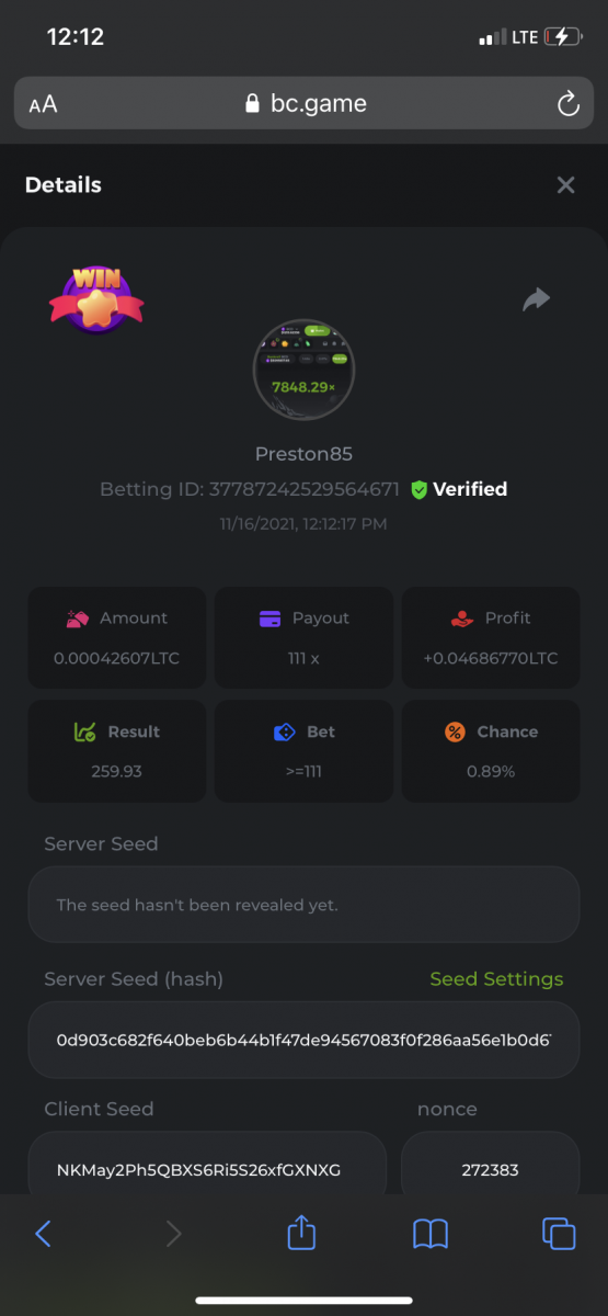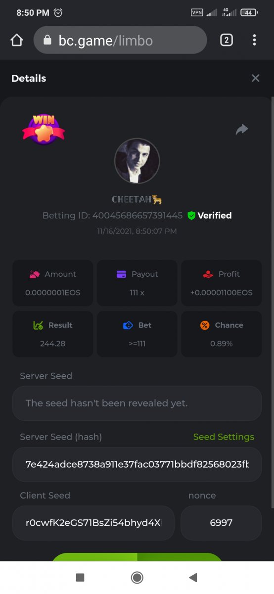 WOUNDED Posted November 16, 2021 Share Posted November 16, 2021 SMALL CHALLENGE #6 Hello all,welcome Every week,along to the prestige & top challenge,we have a side challenge for you We have considered LIMBO game for this week We have prepared a special optionWhoever earns more points this month،will receive a $ 20 prize at the end of the month First place Second place Third place Starts: 21:00, November 16 GMT Ends: 21:00, November 19 GMT What's the Challenge? Earn 111X in limbo Minimum VIP Tier Must be VIP5 or higher in order to enter this challenge. Minimum Bet Size $0.1 USD equivalent (please check the individual coin amounts below) - Bets made below this amount will not count Eligible Coins All coins are eligible (excluding JB) Available Prizes 1......$20 2......$15 3......$10 To enter,copy the bet ID of the bet you'd Once you've copied it,post it as a reply to this thread like so: Betting ID: 40045686657391445 In the same post,upload a screenshot of your win by clicking the game ID WITH VIEW IN USD mode ENABLED (accessible at the bottom of dropdown menu for your wallet up top.this way,we can ensure that your bet indeed met the minimum requirement at the time of placing it The one with the highest base amount wins In a tie,the one who submits the bet faster will be declared the winner Bets must be posted within 24 hours of placing bet in order to keep things fair for everyone Bets must be made during the specified time window stated above. This thread will lock automatically when the time period is over Each user is only allowed with one account Otherwise,the wrongdoer will be dealt with Failure to follow instructions will result in your submission being null and void Payouts will be made within 24 hours of challenge completion,please be patient Let's goGood luck Betting ID: 40045686657391445 Link to comment Share on other sites More sharing options...