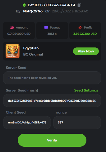 Atteindre le plus HAUT MUTLIPLICATEUR  dans le jeu EGYPTIAN ADVENTURE